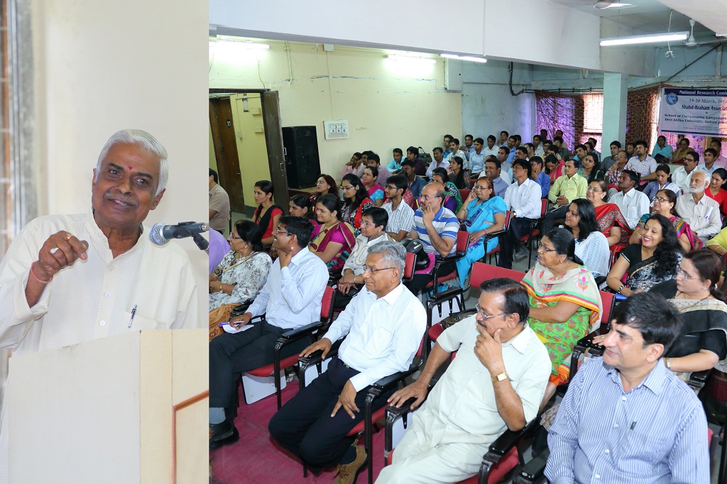शब्द ब्रह्म एसोसिएशन और तुलनात्मक भाषा एवं संस्कृति अध्ययन शाला देवी अहिल्या विश्वविद्यालय, इंदौर , मध्यप्रदेश, भारत में आयोजित दो दिवसीय राष्ट्रीय शोध संगोष्ठी 'साहित्य और ग्रामीण जीवन ' में बीज वक्तव्य देते हुए साहित्यकार डॉ.श्रीराम परिहार (खंडवा) और उद्घाटन सत्र को संबधित करते हुए सरदार पटेल विश्वविद्यालय वल्ल्भ विद्या नगर गुजरात के डॉ.नवनीत चौहान।